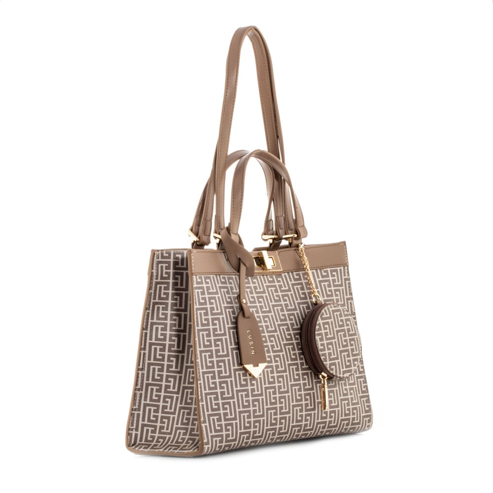 شنطة يد نسائيه بتصميم تقليدي كلاسيك ، شنطه من الجلد باللون الكاكي من القماش بطلاله عصريه ، تتميز الشنطه بيد مقوسه وحزام مرفق لتتمكني من إرتداء الشنطة بالطريقه المناسبه لك ، يمكنك حمل الشنطه بيدك لإطلاله كلاسيك ، ويمكنك حملها بطريقه الكروس لإطلاله عمليه .